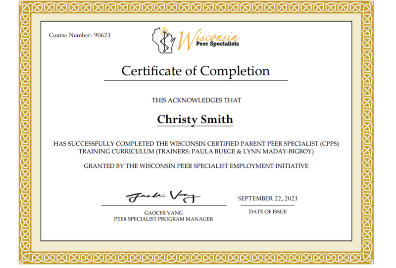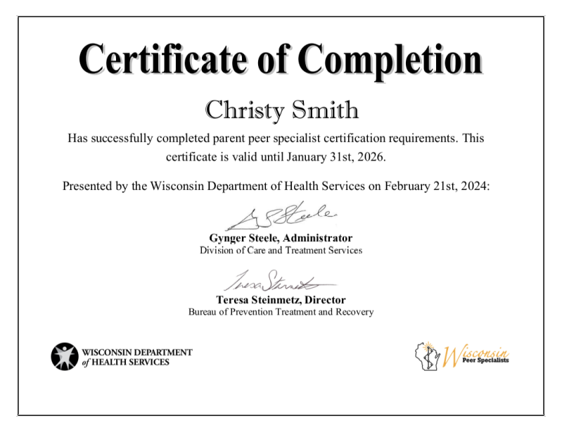 CPPS WI (Certified Parent Peer Specialist)